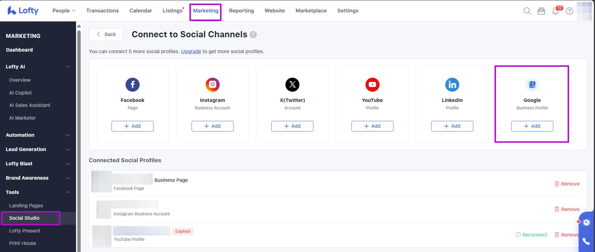 Lofty has an integration with Google My Business for both social media posts and Lofty website reviews. Note: Google website reviews are not available for Subdomain websites.