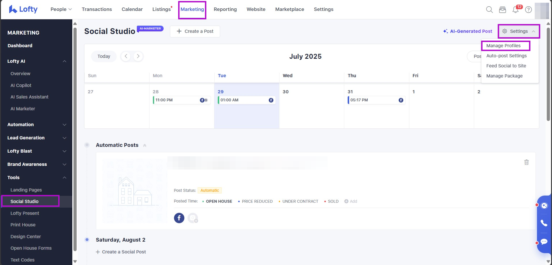 Please see our full Social Studio article for more information on social media posts via Lofty.
