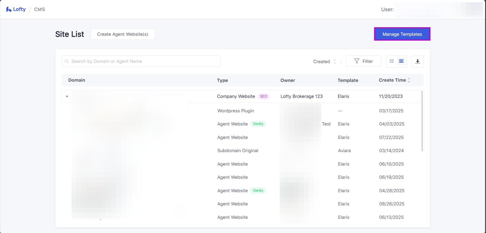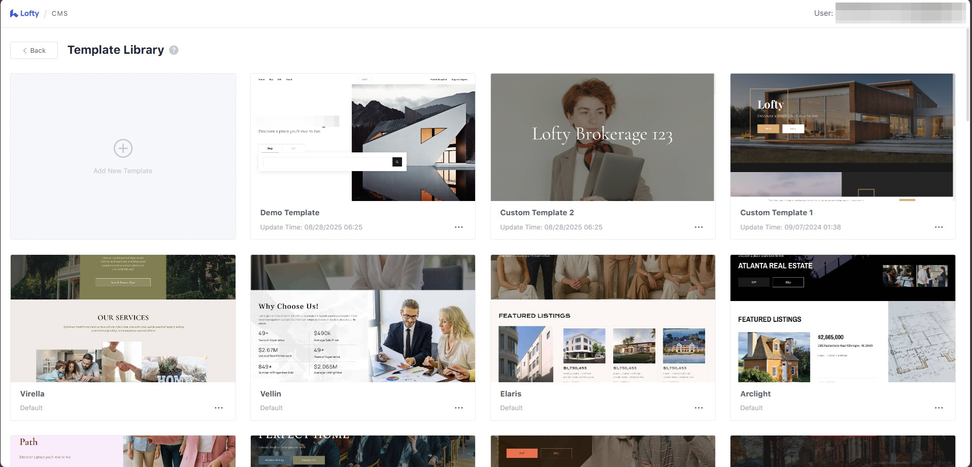 The Website Template Library can be accessed by the Lofty Company owner or admin.