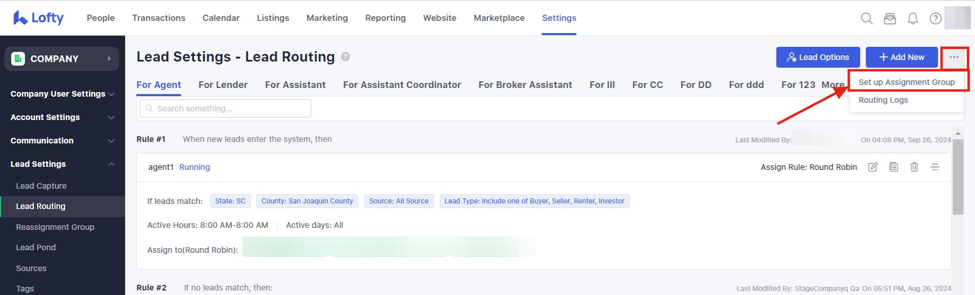 The Assignment Group allows teammates in the Lofty CRM to work together to follow up with leads. When leads enter the system, agents and their working partners will be assigned to leads at the same time.
