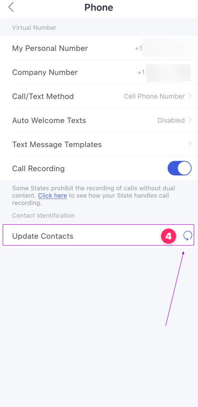 - Click on the refresh icon to the right of the Update Contacts line and follow any steps that appear.