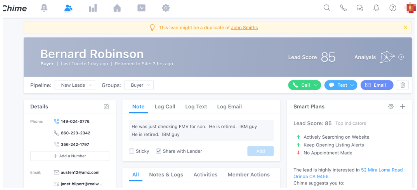 • In the lead details page, you can add smart plans and our smart suggestions feature to intelligently choose the best fit plans for your leads;
