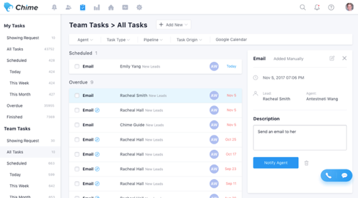 In the updated Task Management, admin users can notify team members to follow up with tasks. After clicking the Notify Agent button, the assignee will receive a notification in their Lofty CRM.
