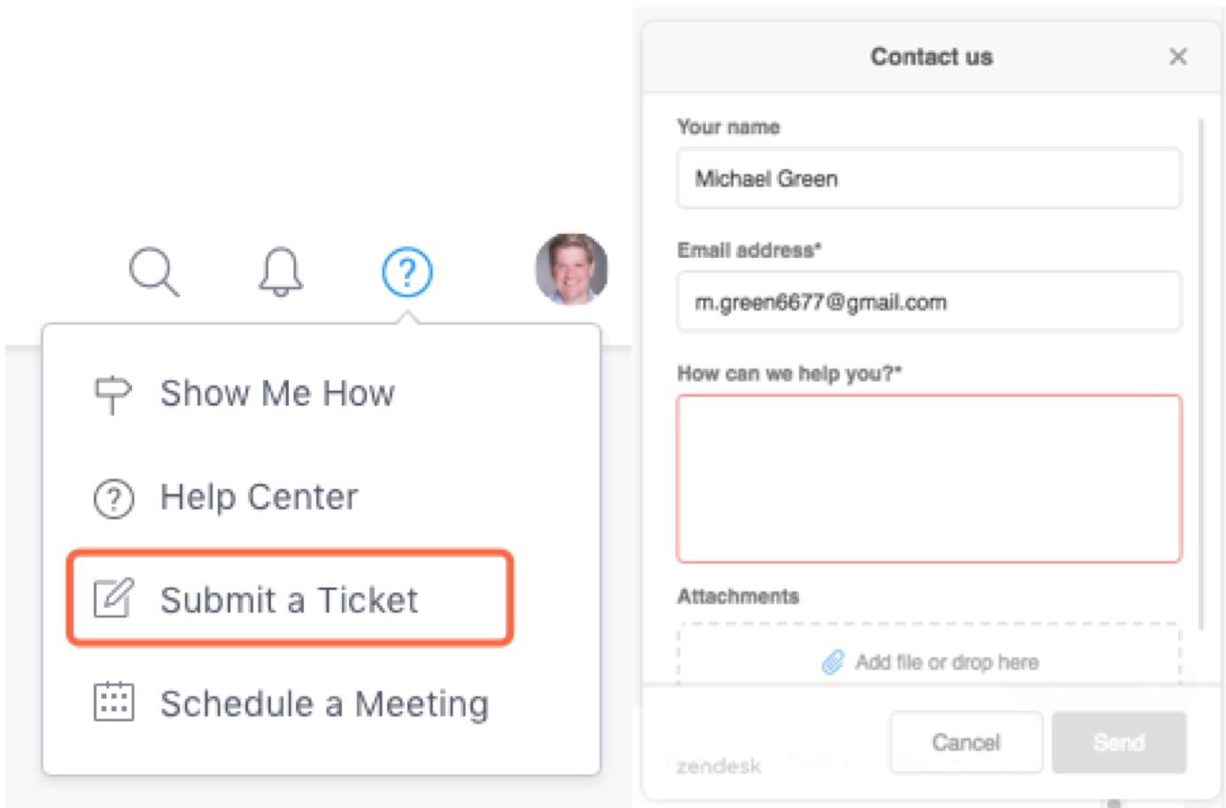 We integrated the Zendesk contact form function with Lofty. Now, users can click ‘Submit a Ticket’ and fill in the form with their questions. If they need face-to-face help, they can click ‘Schedule a Meeting’ to schedule an online meeting with our support team.