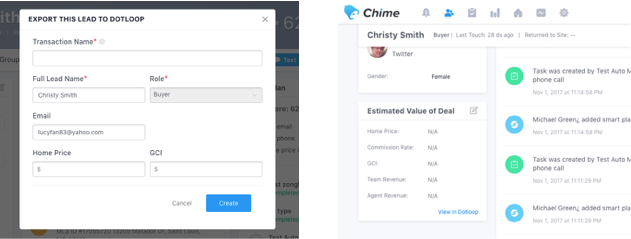 Lofty’s integration with Dotloop enables you to close deals faster. You can export leads to Dotloop and create a loop.