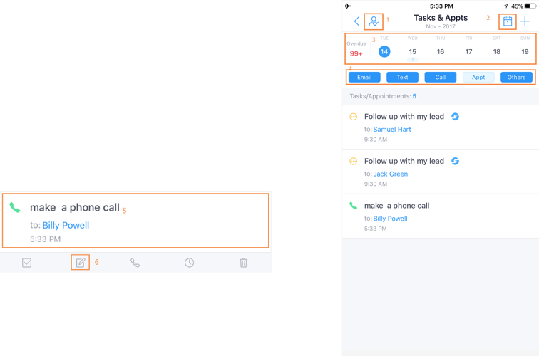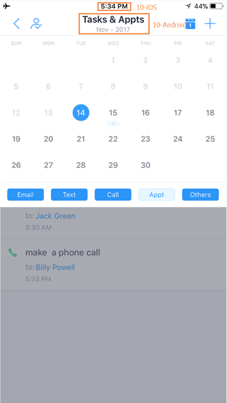- Add new task/appointment by clicking the plus sign icon on the top right side of the page.