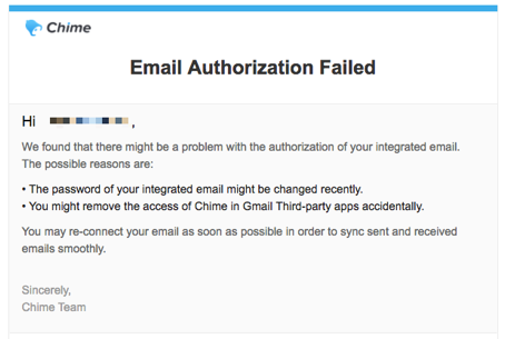 When users change the password of their integrated emails or Lofty’s access to their Gmail, the integrated email will be disconnected and they will receive a notification email like this: