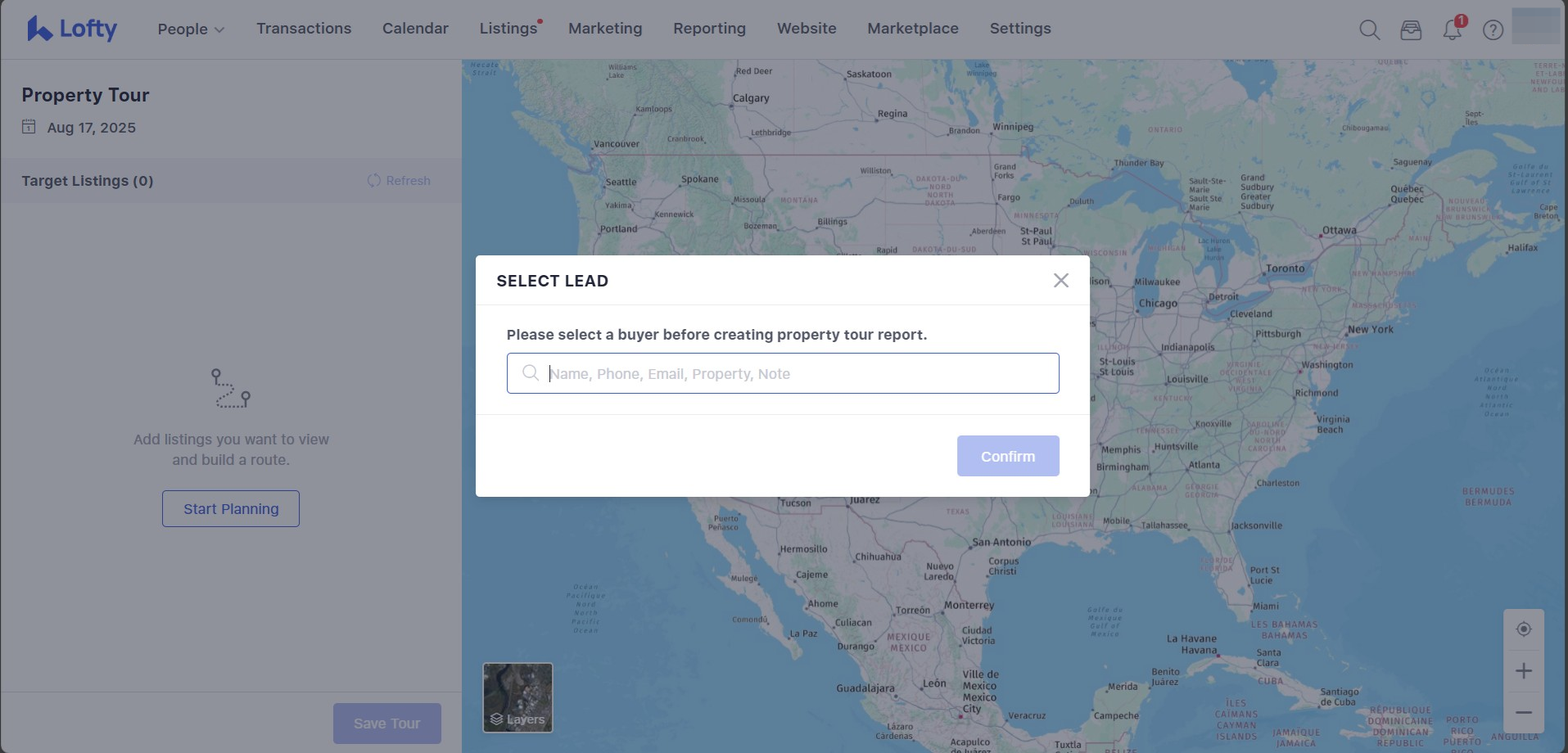 Next, the selected listings will be added to the tour and you will be prompted to select the lead for the tour.