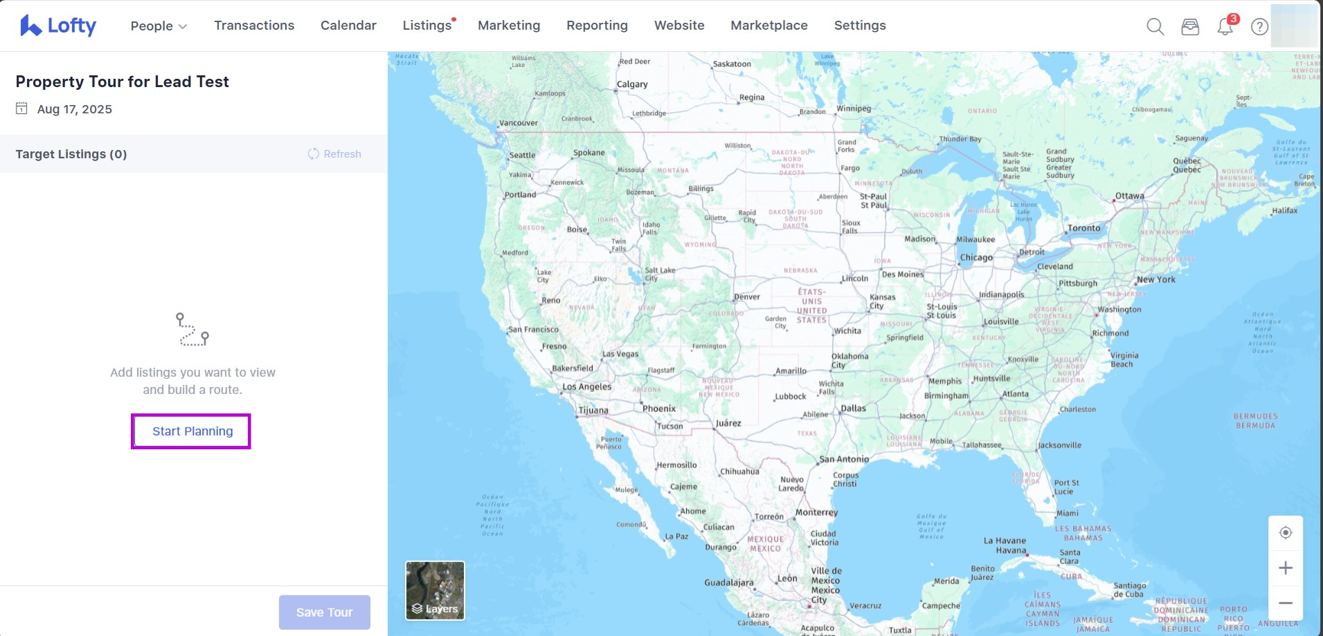 Once the lead has been selected, you may start planning the tour. Click Start Planning to begin.