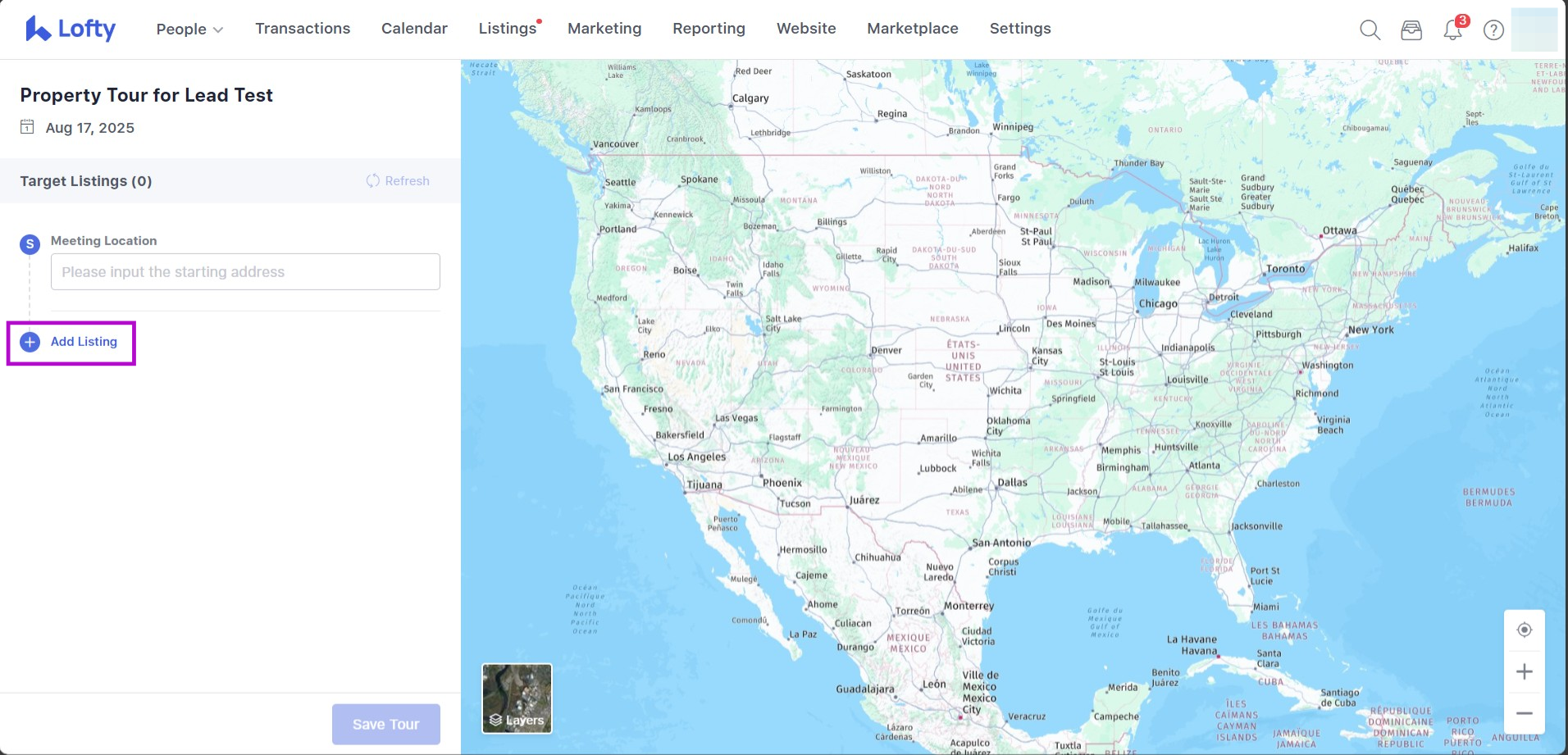 Once the lead is selected, you have the opportunity to edit the tour. Again, remember to set your starting location, time, and date.