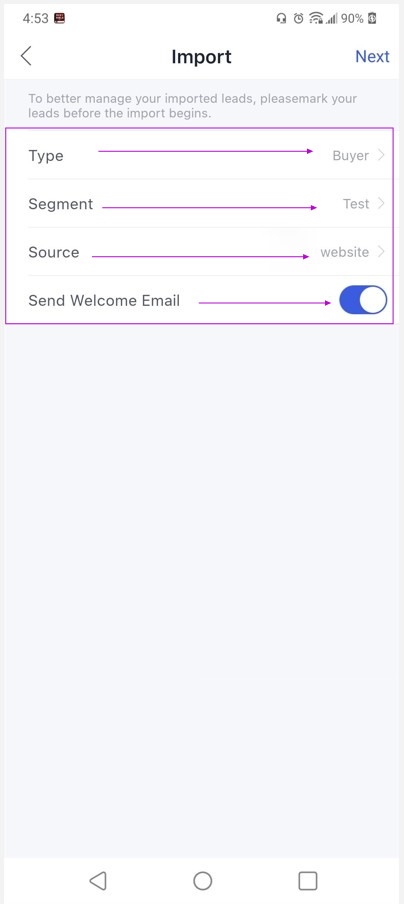 Next, mark your leads before the import begins, then hit the Next button.