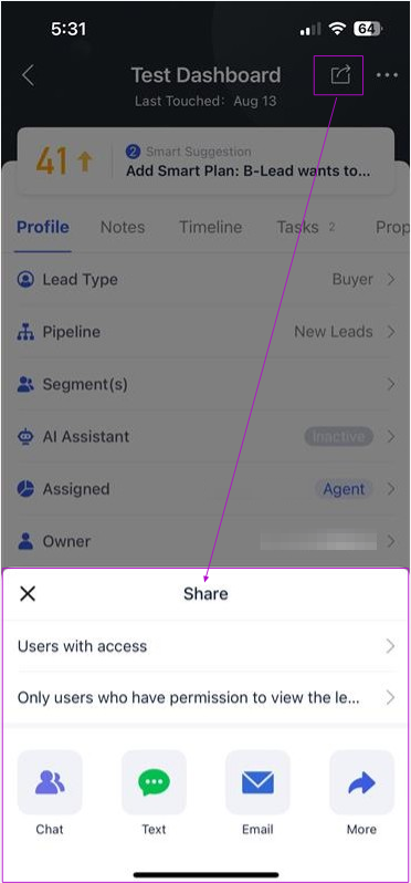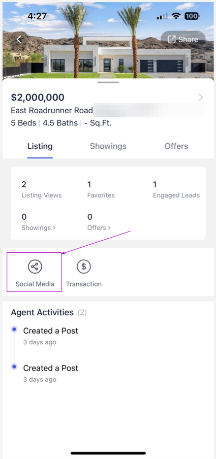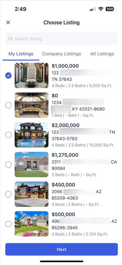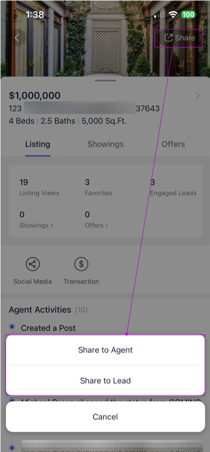 Listings can be shared with other agents, leads, or you can generate a showing link.
