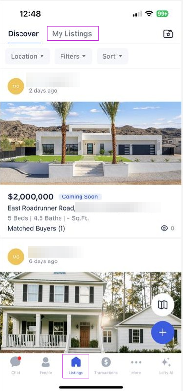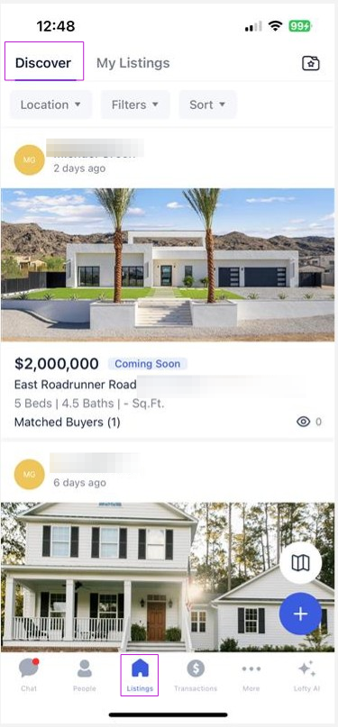 The listing page will be identical to the web version of Lofty. The Discover tab will have the same functionality as the web app's All Listings page.