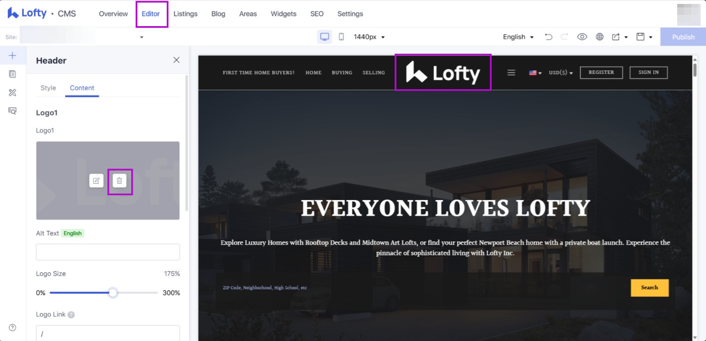 When uploading your logo to your Lofty website, we recommend using a .png file that is 96 pixels in height. Generally, a logo that is twice as wide as it is tall works best.