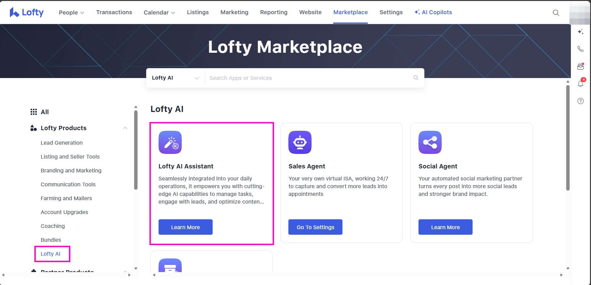 Lofty AI Assistant is available in the Lofty Marketplace.