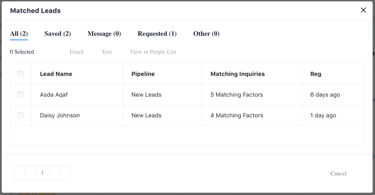 For each listing, we will calculate the matched(best-fit) leads by Inquiries. They can view these matched leads and have a direct insights which tell users which leads may be interested in which properties. And also they can send the listing to interested leads via mass emails or texts.