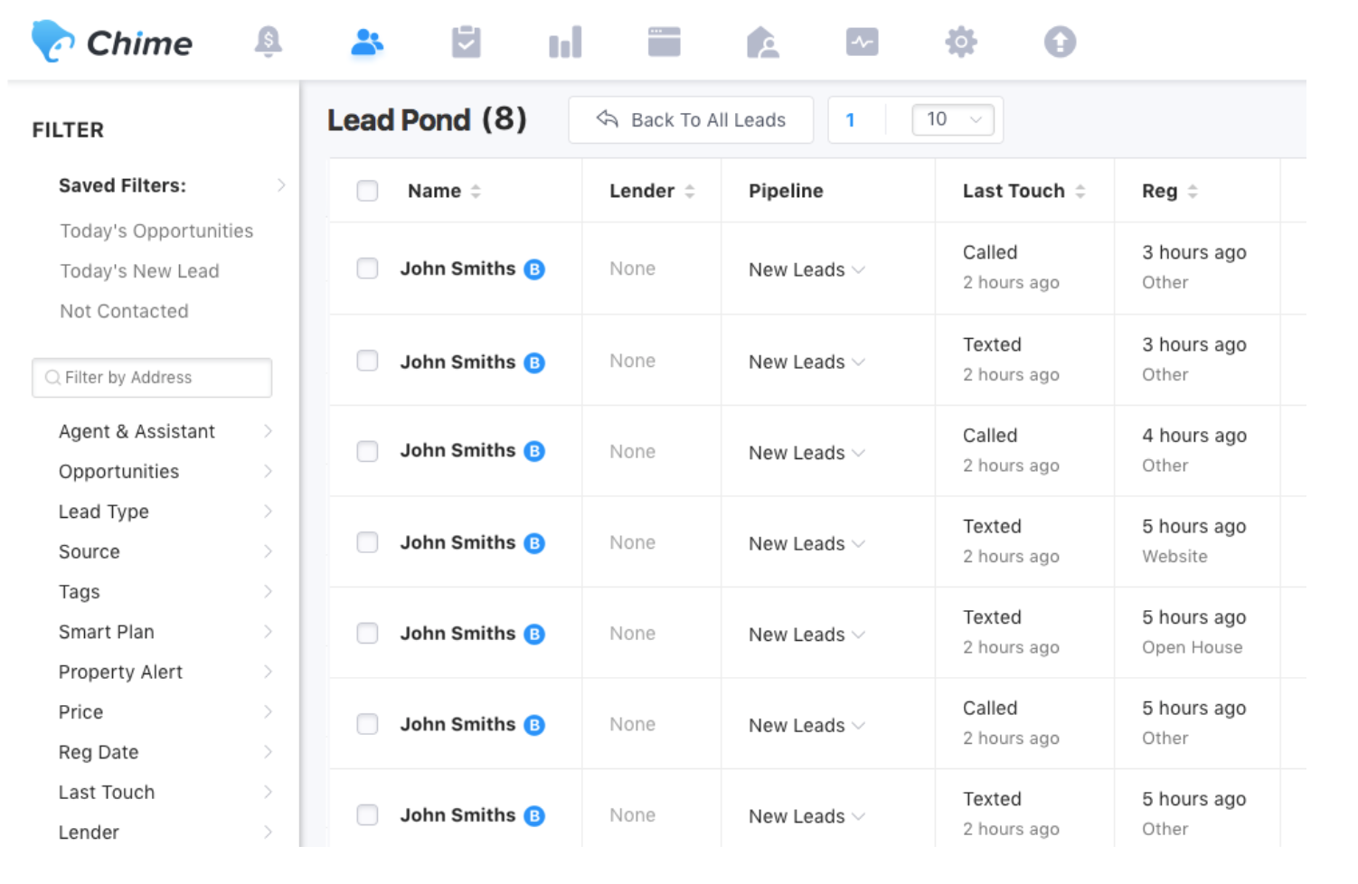 A Lead Pond is a location for storing leads that are not assigned to a specific agent. All the agents in a team have access to these leads, so that they can follow up and claim leads as desired. With this feature, agent teams can achieve a better distribution of the lead resources for enhanced productivity.