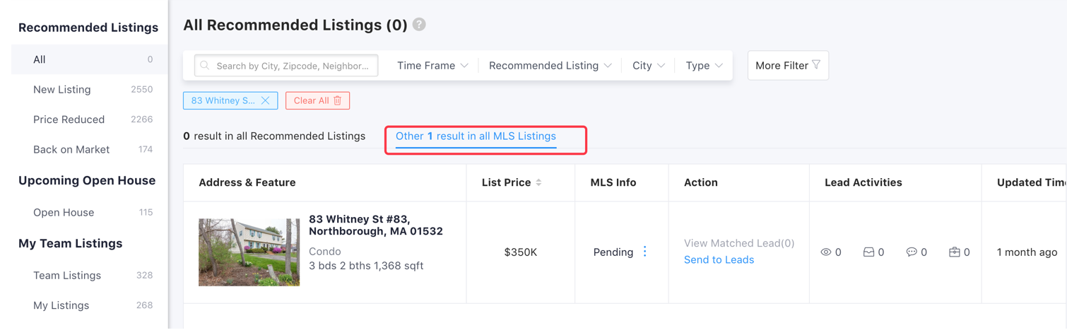 - Search and view results by tabs. Users can perform a search and view results on the Recommended listings page. Results that are not Recommended Listings will be displayed in another tab.