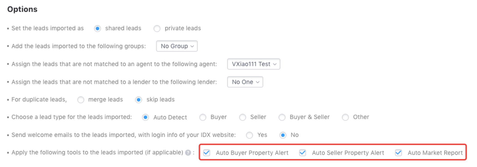 - Lead Import Optimization - Support Auto Alerts and Market Reports (Web)