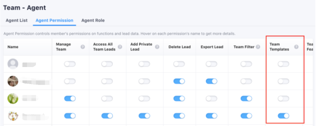1. The users with the permission of Team Templates can create team text templates.