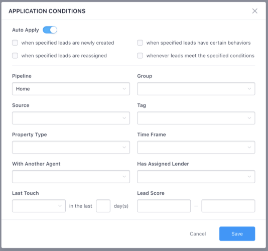 2.The auto application function now supports a new criteria - Lead Score.