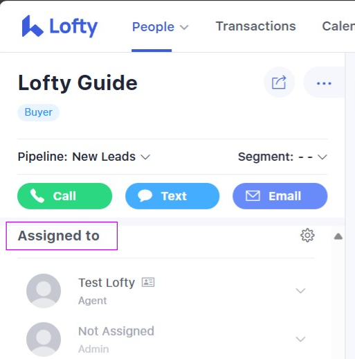 *Please note that the primary owner of the lead (associated with reporting, transaction management, property alerts, etc.) is always going to be the Lofty user in the "Agent" slot, which is always first on the list: