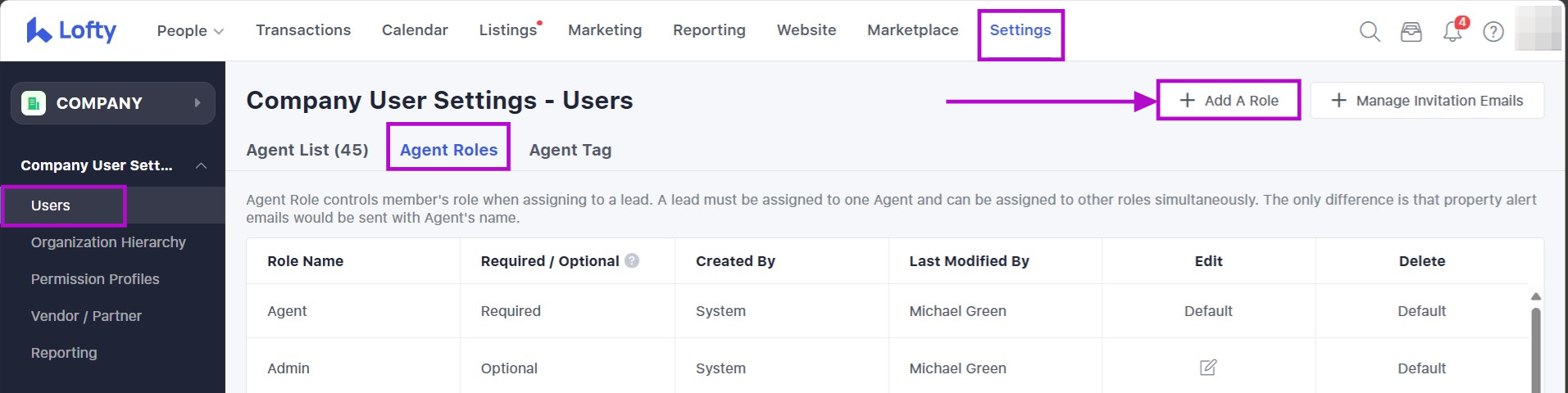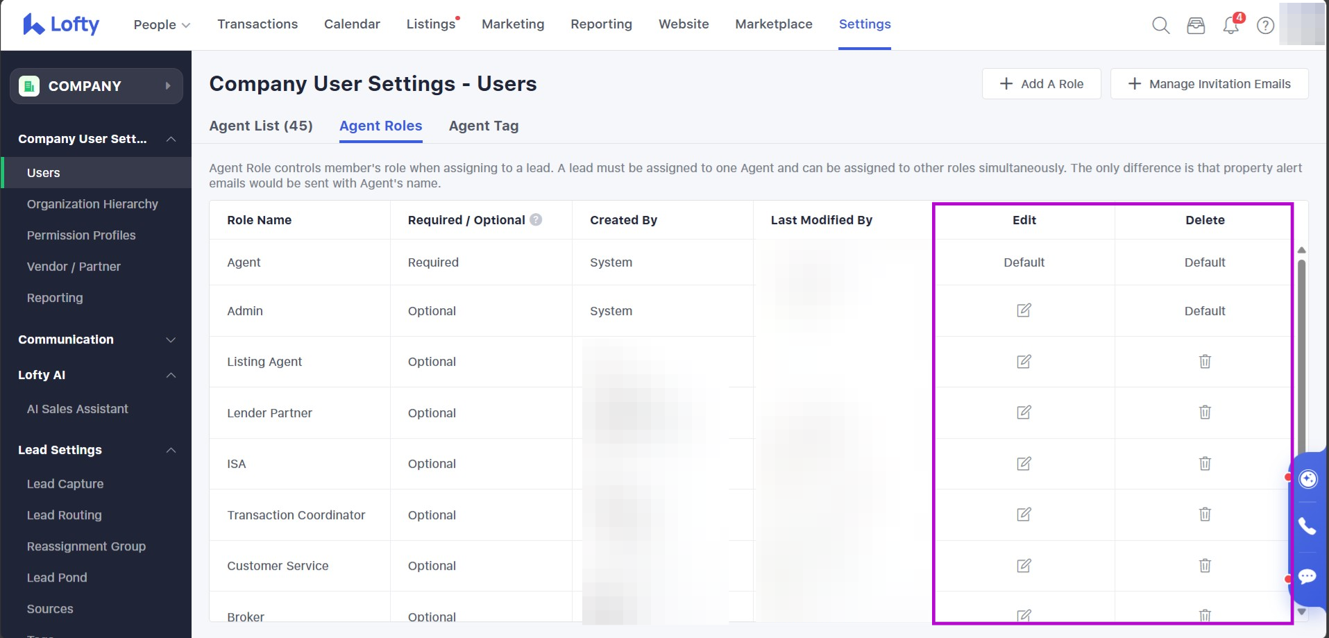 Please note that agent users cannot be assigned to the "Lender" role. An additional TEN agent role can be created. All users assigned to a lead will be able to have access to view the lead, receive opportunity notifications, etc. A new filter on the People Page is also created for each new role.