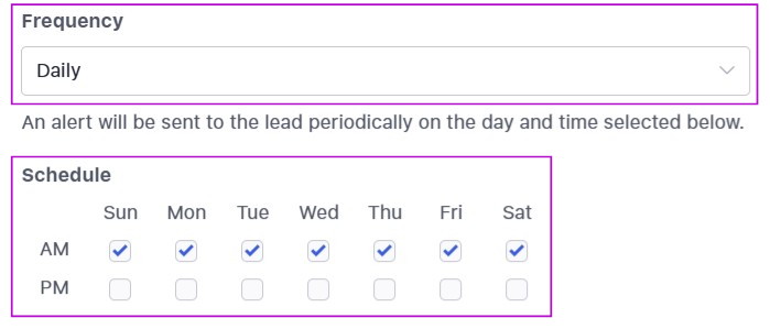 For example, if you set the alert up to send property alerts to your leads every morning (choose “Daily” and “AM” in the pop-up setting window), the schedule will be every 24 hours. The first Property Alert will include qualified properties that enter the market between the time when the Property Alert is set up and when it is sent out the next morning. Subsequent Property Alerts will include all qualified properties that entered the market after the previous property alert email was sent.