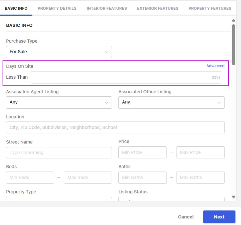Please note that the only way “Days On Site” will actually apply to the alerts is if the “use listings on the market as supplements” box is checked. If you do not check this box, the listings you send to leads will not include any listings that entered the market before the Buyer Property Alert was set.