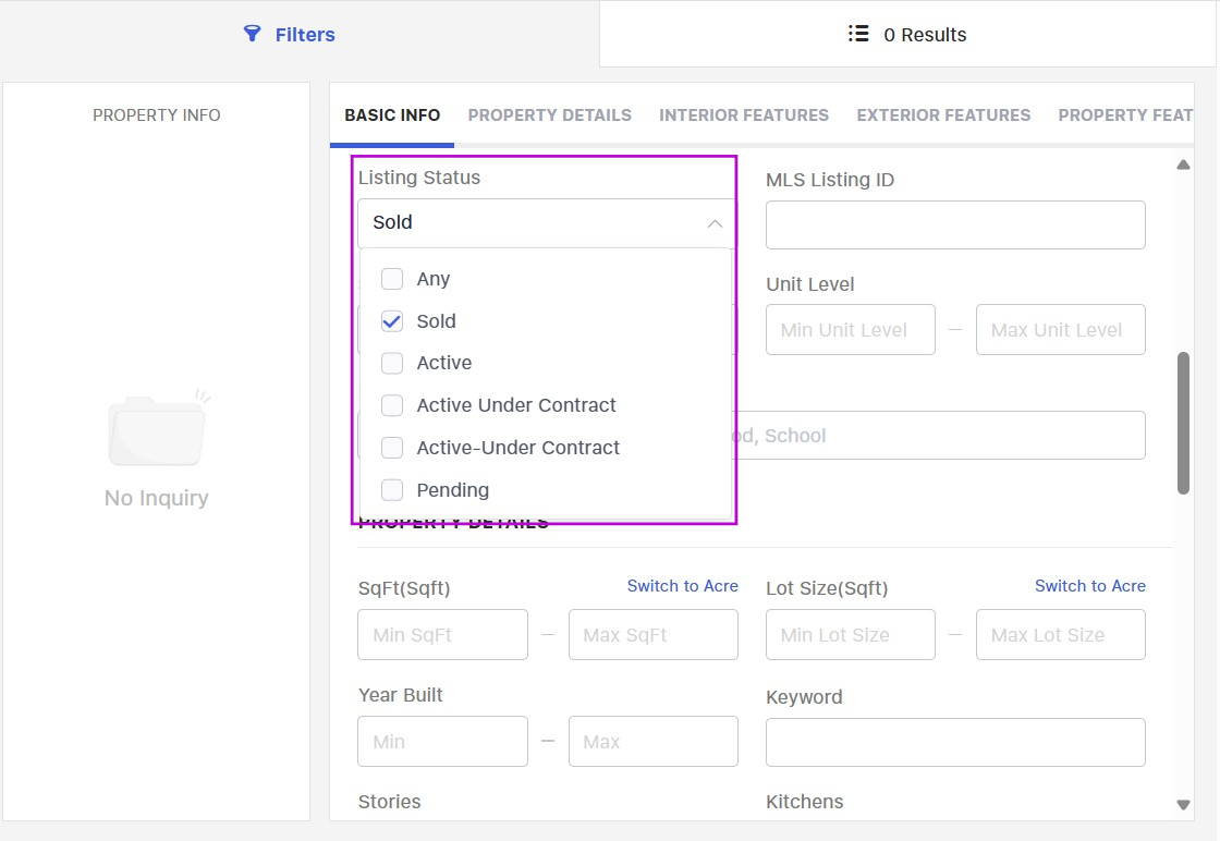 In addition to newly-sold listings, the Snapshot sent to your seller leads can also be set up to include newly-added listings (for buyers) and listings whose prices or status changed to the defined price range or the preset status. Those criteria can be defined in Filters.