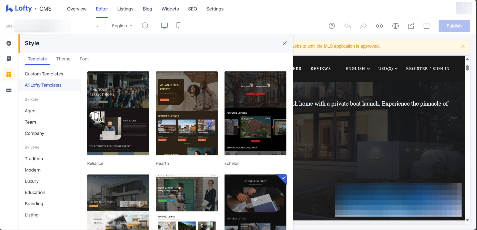 Lofty provides thirty-three (33 mobile-friendly website templates that are designed to load quickly, be optimized for SEO, and provide you with the flexibility you need to display your business. You first choose a template when you start your website for the first time on Lofty. However, if you would like to change this website template, that is also possible. Below are the template styles you can choose from:
