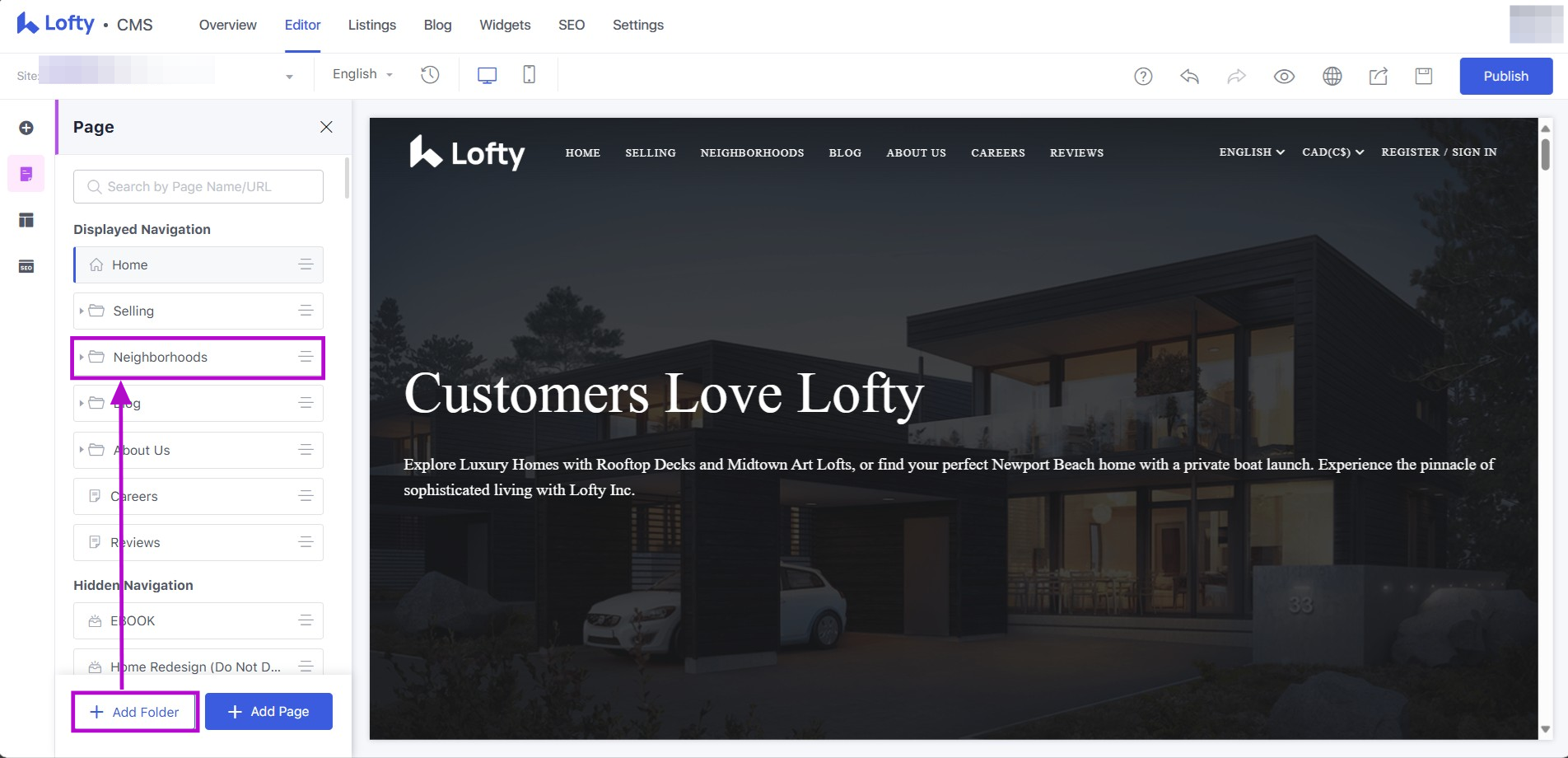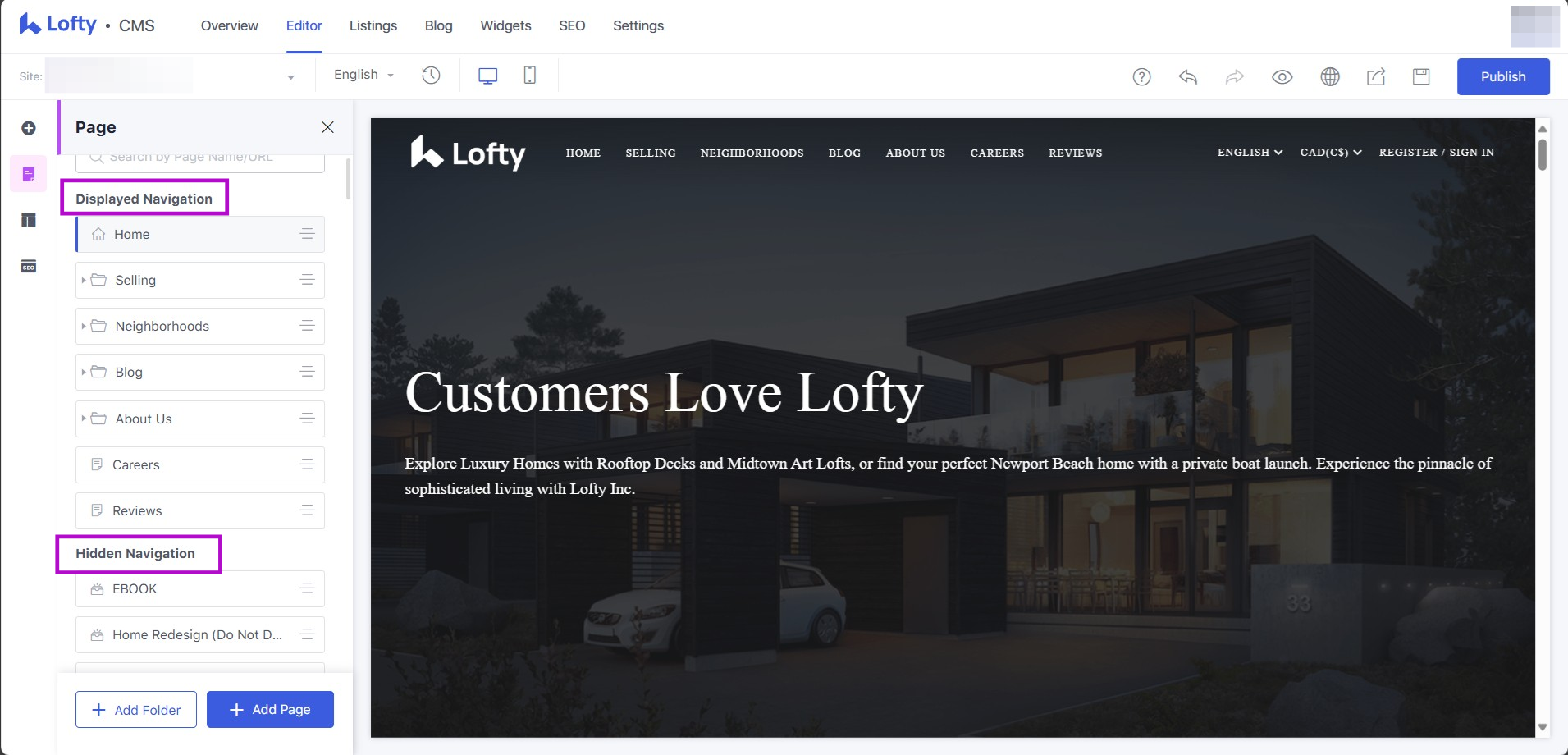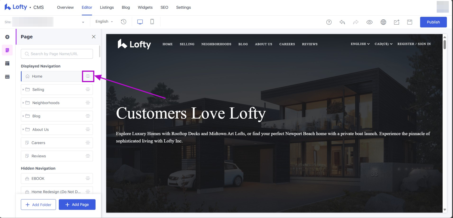 Edit Website Navigation Bar
