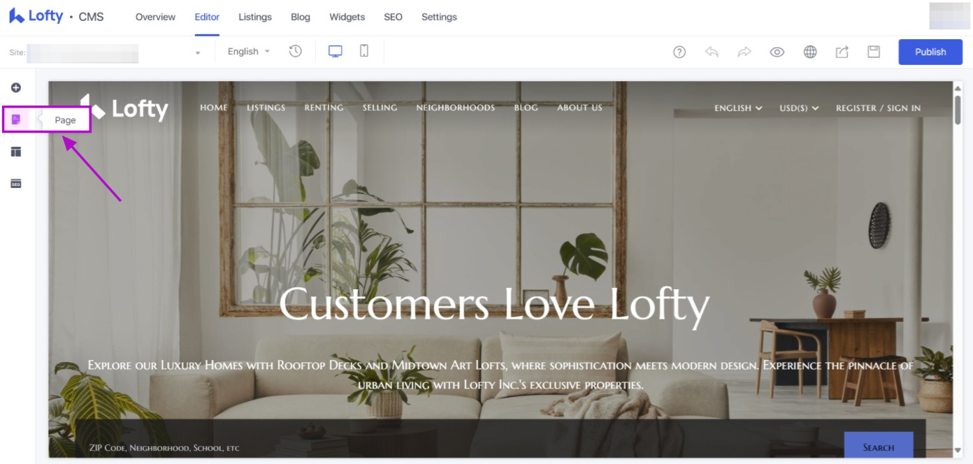The footer is a very important part of any website as it presents more company information, contact details, links to sites on the page, important MLS disclaimers, etc. Having this section up-to-date and ready to go is going to be an important part of building your Lofty website.