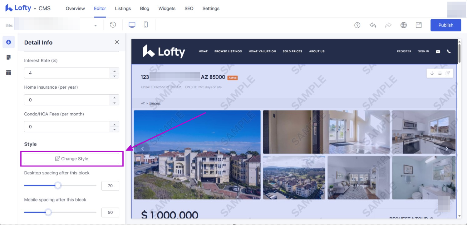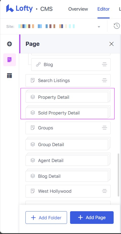 - Currently, these blocks cannot be deleted or hidden. They can be reordered. You can add blocks to these pages but please note that when you add a block to this page that all the listing detail pages will display that same block because it is a page group. In other words, you cannot add blocks to specific listing detail pages--for doing that you would want to build a landing page to feature one specific listing and add/remove blocks as desired.