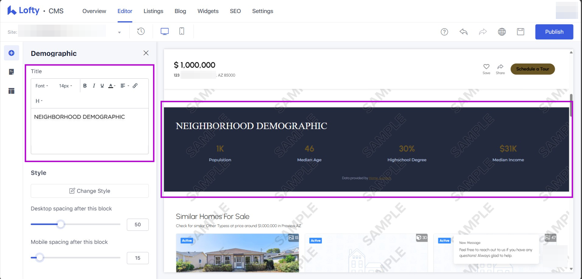 Edit Market Trends, Demographics, and Similar Homes Blocks