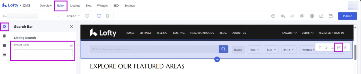The "Search Bar" block can be used to embed a search bar on any page of your website here you want to provide site visitors with a quick and easy way to search for listings.