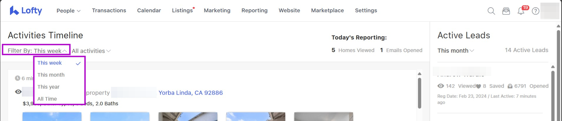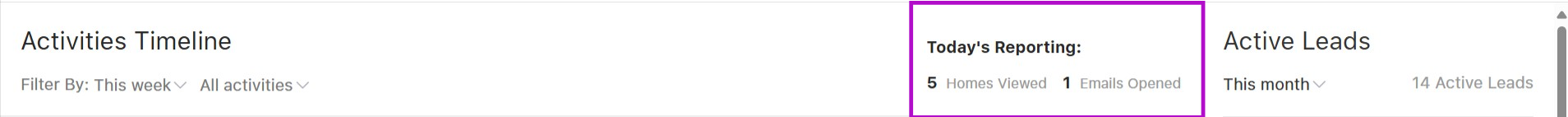 A section right in the middle will point out "Today's Reporting" which includes the number of homes viewed and emails opened.