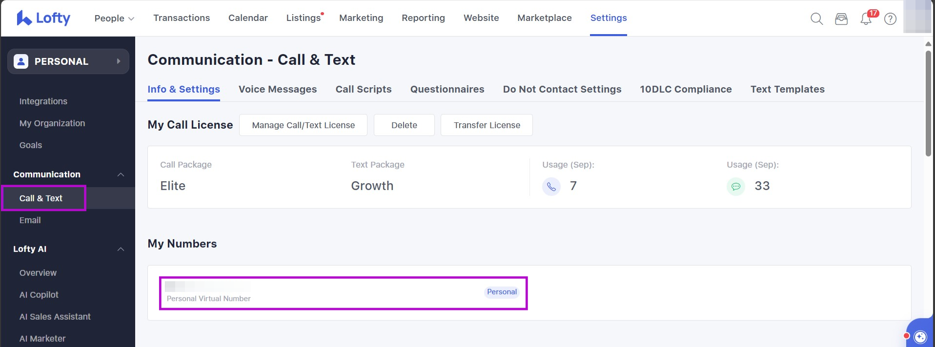 - 10DLC registration must be complete and verified before users are able to text in Lofty. For more information, please see: A2P 10DLC Registration