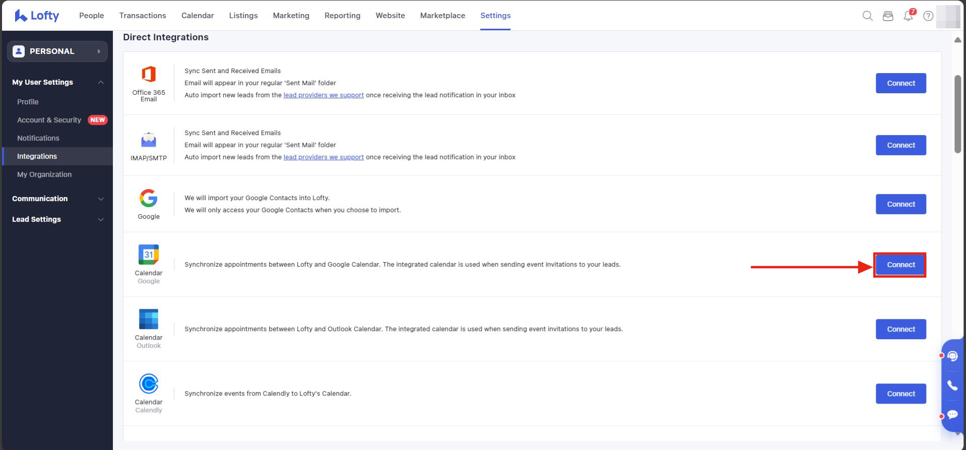 The Google Calendar integration allows for appointments to be synced to your Google Calendar from Lofty. In Lofty, there is no calendar view for appointments so an integration with Google Calendar will allow for you to align everything with your other appointments on your existing calendar.