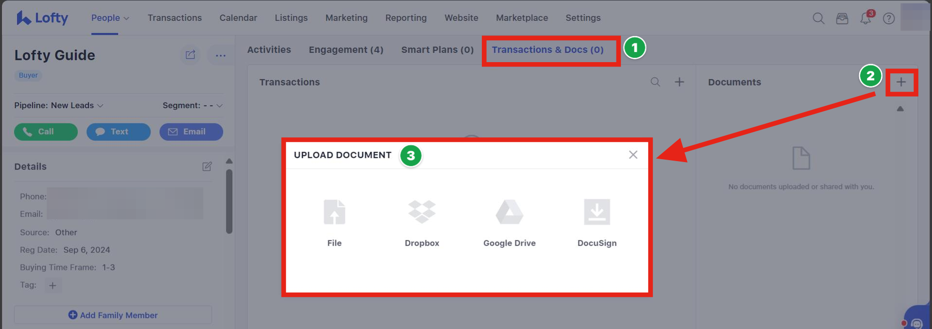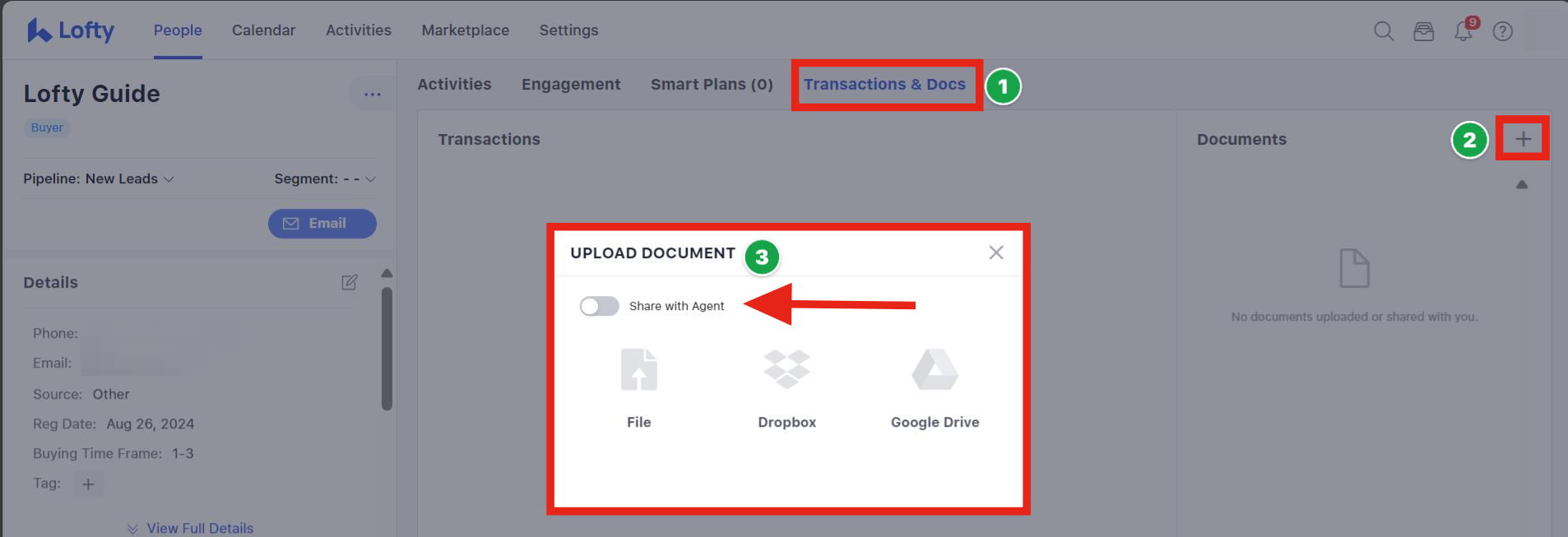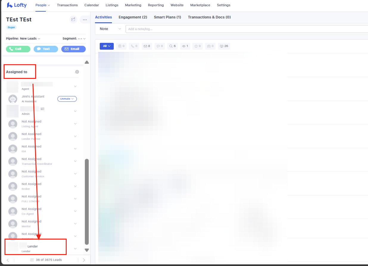 Lofty agents and lenders can collaborate on leads where access is given to the lender to participate. The lender is only given limited access to the lead--meaning the primary owner of the lead will always be the real estate agent/team. Below is an outline of what tools are available to the lender.