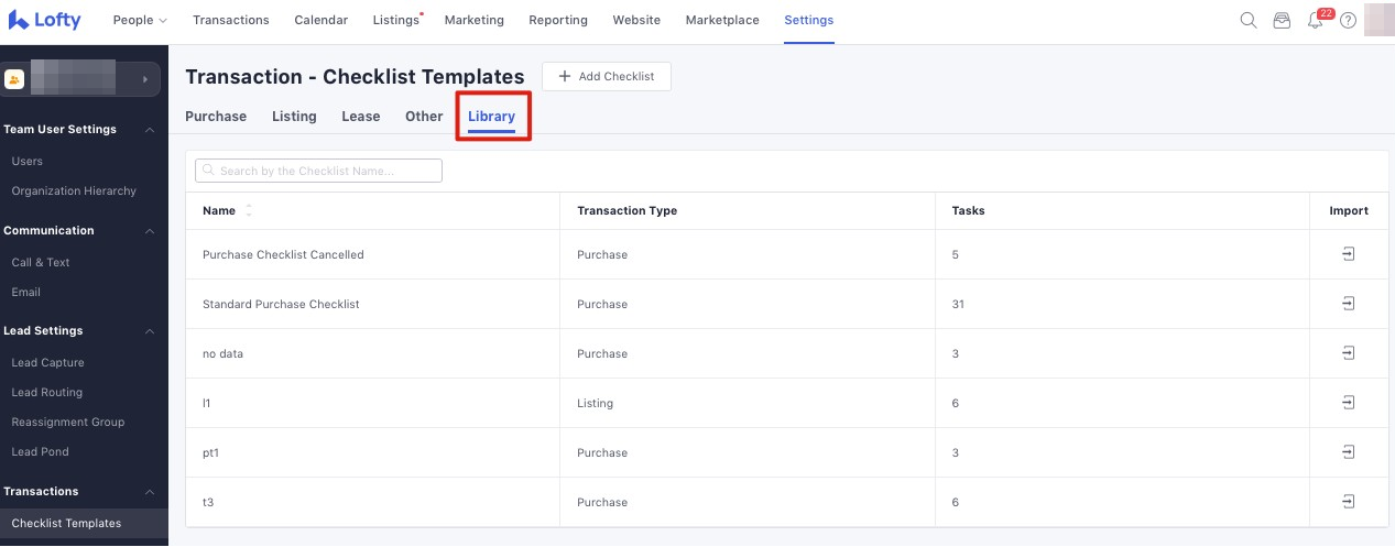 Transaction Checklist Library allows you to import transaction checklists directly into your workflow. No matter whether "Personal," "Office," or "Company" is currently selected in the top-left navigation bar, the Library will always remain available. The difference is that, depending on the selected option, importing a Checklist from the Library will automatically correspond to the respective scope.