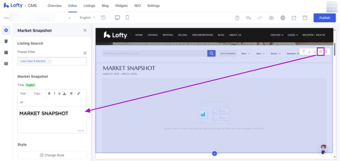 - Preset Filter. Define the preset filters that you want to be pre-populated when a site visitor opens this page and sees the Market Snapshot block. Site visitors can always remove these filters if they want to check data for different locations, but this will give them a starting point.