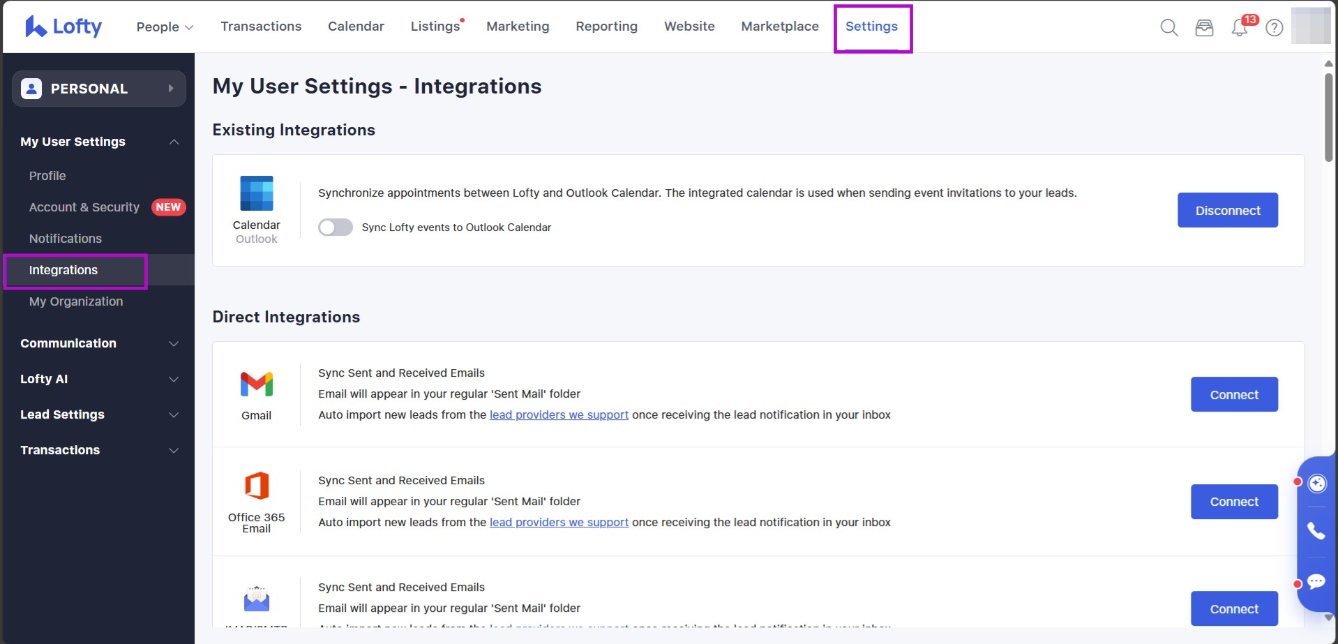 In this article, we will review the steps necessary to integrate Lofty with Realty.com. This will allow Realty.com leads to be sent directly to Lofty the moment they are generated on the Realty.com platform.