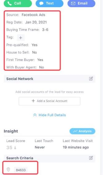 - utm_source. This will be the source of the lead recorded in Lofty. For context, the "source" is usually something like Zillow, Realtor.com, Homes.com, or other source names. The source is commonly used for lead routing/distribution within teams (see Lead Routing Rules). If this is not defined differently here, the source entered in Lofty will be "Facebook."
