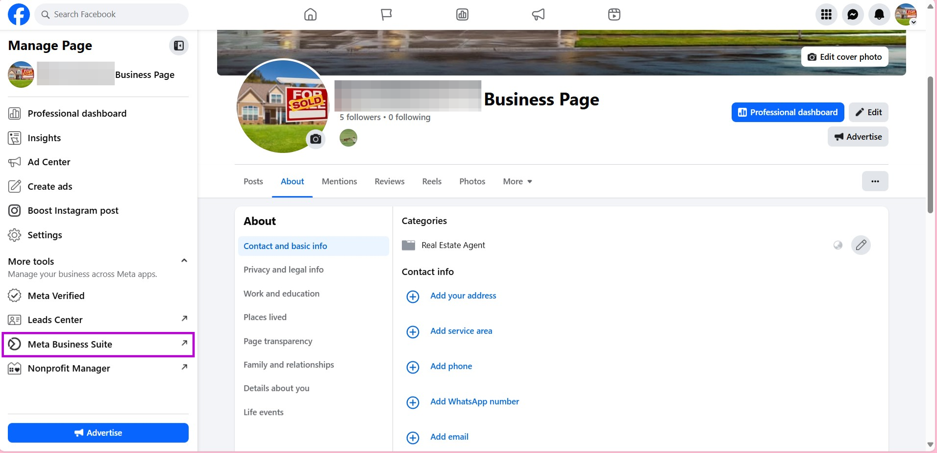 Log in to your Facebook page as an admin > select Meta Business Suite: