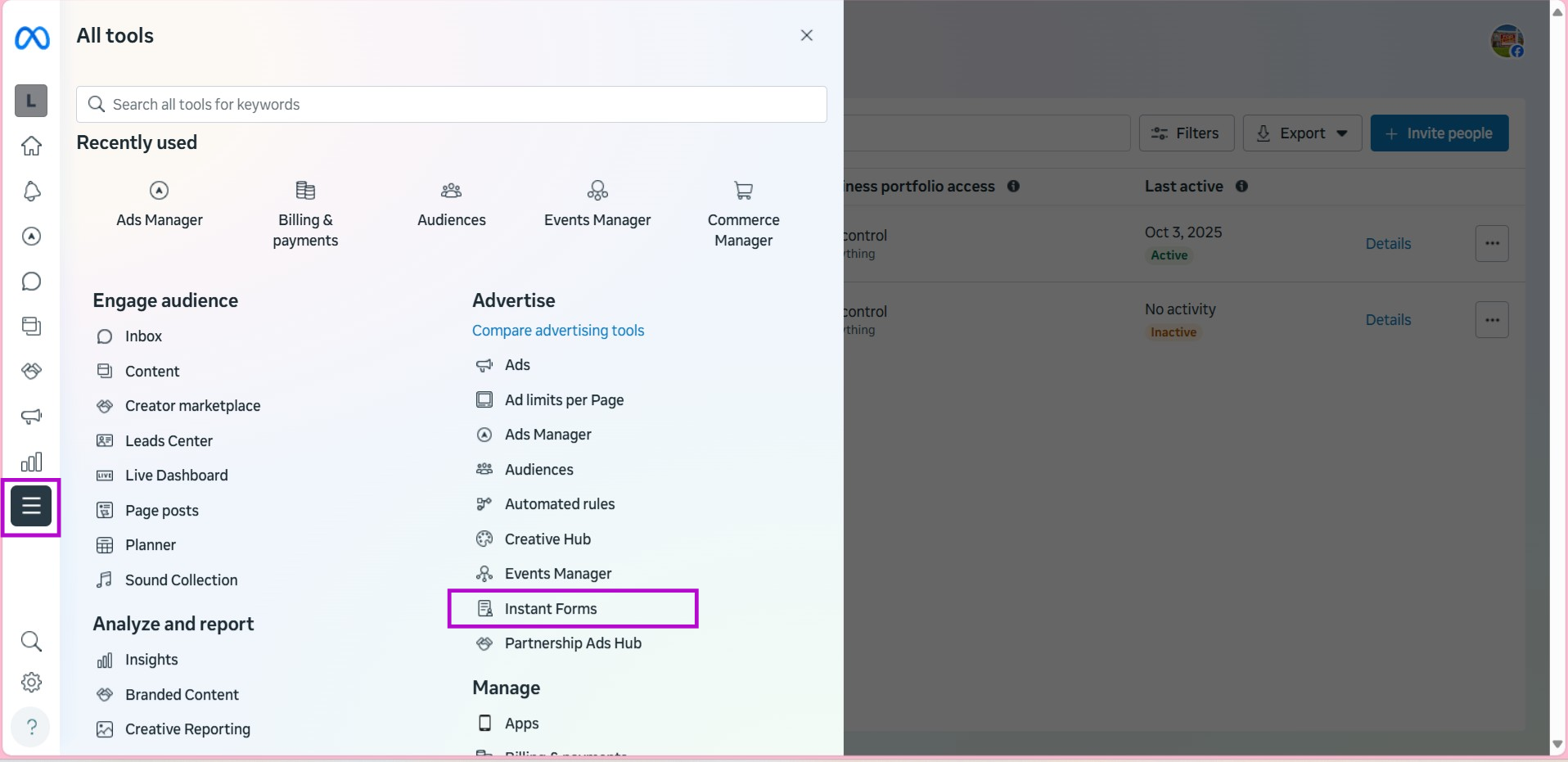 You will need to have admin access to any Facebook business pages you want to connect to Lofty. Access is required for pages, the ad account, and lead access. This process will look slightly different depending on whether you are a partner or if you have been added to the business as an individual. Both processes are described below: