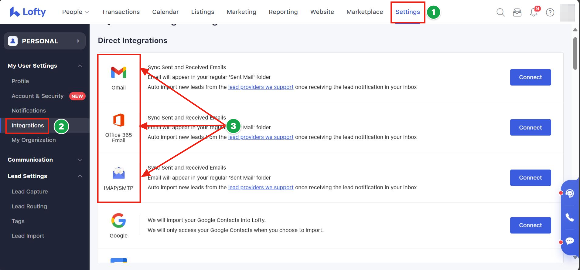 Please note that some services are connected directly to Lofty via API. Anything connected via API would be referred to as a direct integration and would not require email parsing configuration. Examples of this type of integration include Zillow, Facebook, Realtor.com, etc. Direct integrations are less common and require a much more involved setup process between Lofty and that organization. Email parsing is a very simple thing to set up in comparison.