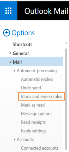 2. Click Inbox and sweep rules under Options.