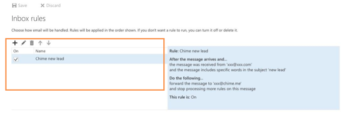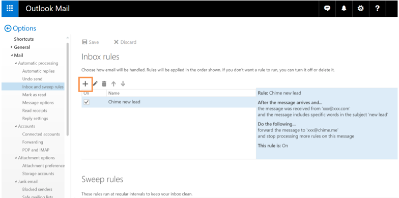 3. Click the + icon to create a new Inbox Rule.