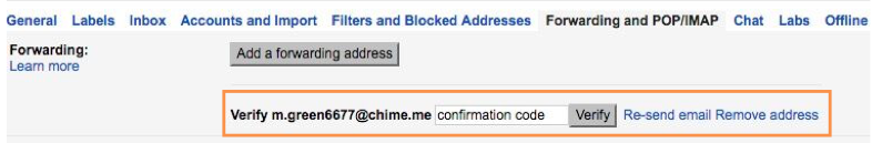 7. Select "OK". The pop-up will disappear, and you will see the email address under "Add a forwarding address".